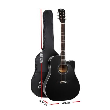 Alpha 41 Inch Acoustic Guitar Equaliser Electric Output Jack Cutaway Black