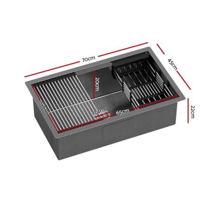 Cefito Kitchen Sink 70X45CM Stainless Steel Single Bowl Drain Rack Basket Black