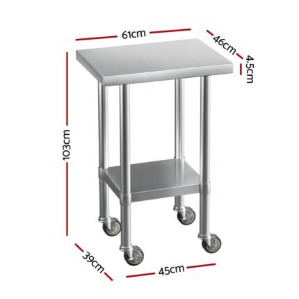 Cefito Stainless Steel Kitchen Benches Work Bench Wheels 61X46CM 430