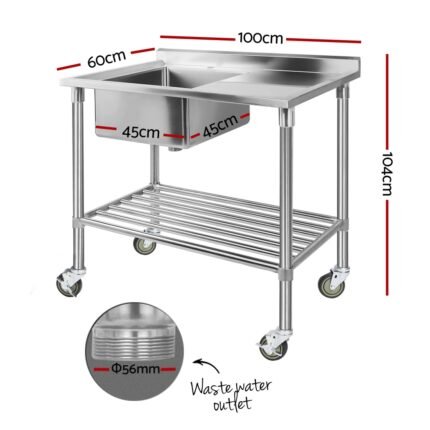 Cefito Stainless Steel Sink Bench Kitchen Work Benches Bowl Wheels 304