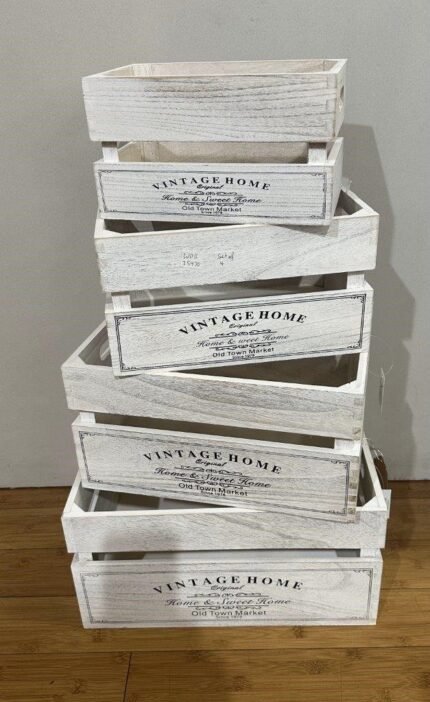 Set 4 Vintage Home Wood Crate White Wash 40x20cm