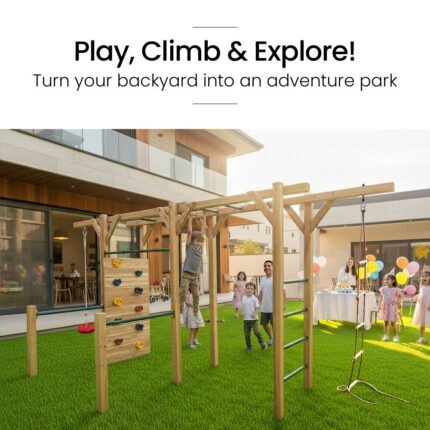 ROVO KIDS Ultimate Outdoor Monkey Bars Playset Frame, with Climbing Wall, Disc Swing, Rope Ladder