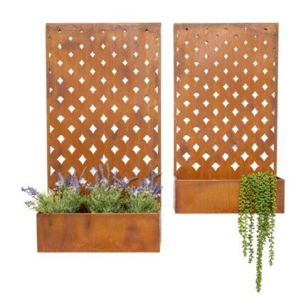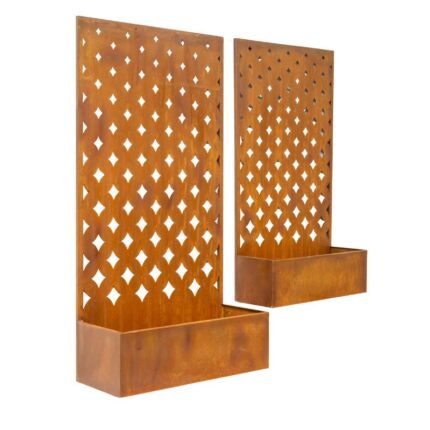 Set 2 Nested Rust ‘Flowers’ Wall / Floor Planters 50cm, 45cm