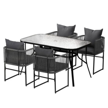 Gardeon 5PCS Outdoor Dining Set Table and Chairs Rope Patio Furniture Garden Black