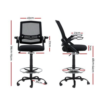 Artiss Office Chair Drafting Stool Mesh Chairs Black
