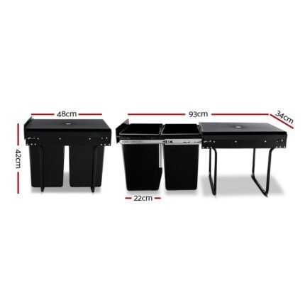 Cefito Pull Out Bin Kitchen Double Basket 2X20L Black