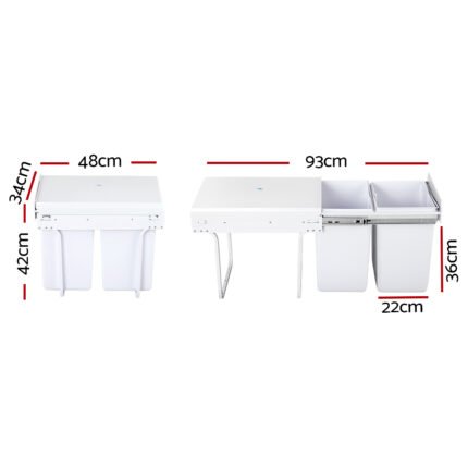 Cefito Pull Out Bin Kitchen Double Basket 2X20L White