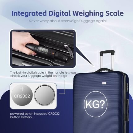 3 pcs 20″/24″/28″ Digital Weighing Scale and USB Charging Port Lightweight Luggage Suitcase Blue