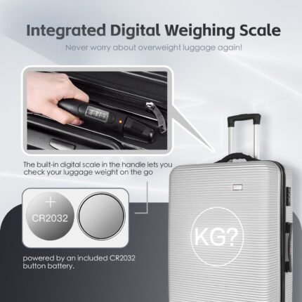 3 pcs 20″/24″/28″ Digital Weighing Scale and USB Charging Port Lightweight Luggage Suitcase Silver