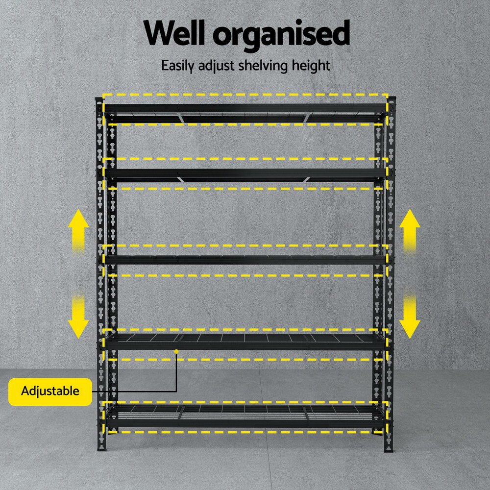 The Giantz 5-Tier Storage Rack is a versatile and durable shelving unit that offers a storage solution for your home, garage, or workspace. With a 150kg weight capacity per shelf, it’s ideal for heavy-duty items like tools, storage bins, and equipment. Made from anti-rust steel, this shelving system is designed to withstand wear and corrosion, ensuring long-lasting use. The adjustable beams allow you to customise the height between shelves to suit various storage needs. The boltless assembly makes for an easy setup, with no tools required.
