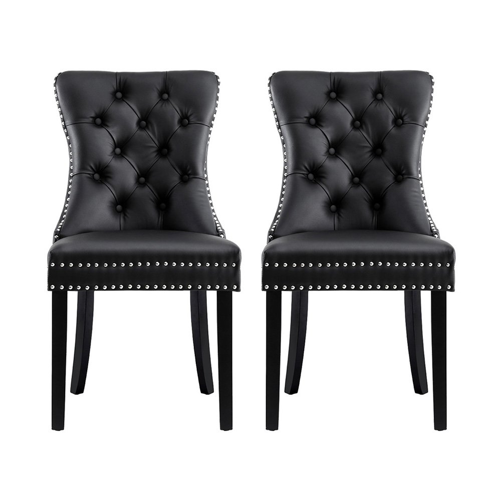 Elevate your dining space with this set of 2 Artiss Dining Chairs, designed to bring timeless charm to your home. Upholstered in your choice of PU leather or plush velvet, the chairs feature a button-tufted backrest and rivet edging for a sophisticated look. Crafted with a cushioned backrest filled with high-resilience foam, these chairs provide exceptional comfort during meals and gatherings. The rubberwood legs ensure reliable support, while anti-slip feet protect your floors. Perfectly blending style and practicality, these dining chairs make a stunning addition to any dining room.
