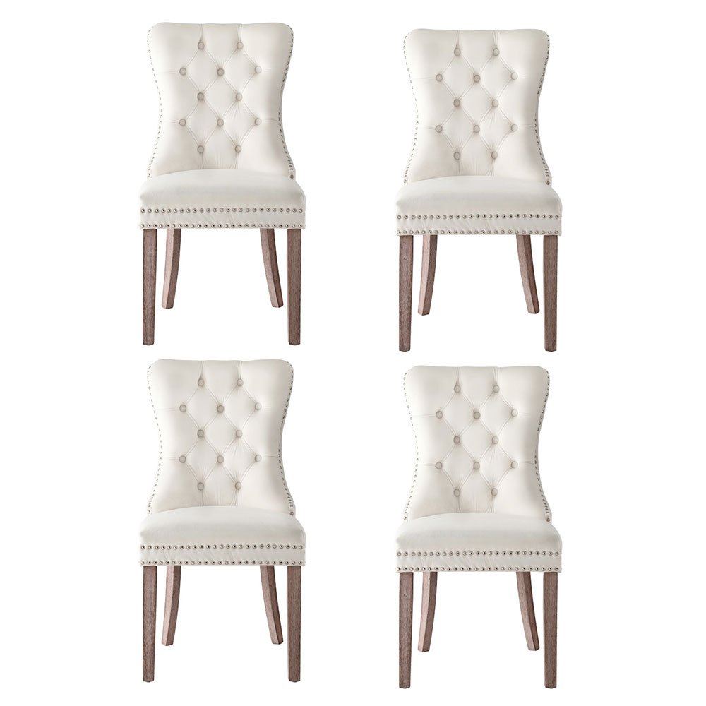 Elevate your dining space with this set of 4 Artiss Dining Chairs, designed to bring timeless charm to your home. Upholstered in your choice of PU leather or plush velvet, the chairs feature a button-tufted backrest and rivet edging for a sophisticated look. Crafted with a cushioned backrest filled with high-resilience foam, these chairs provide exceptional comfort during meals and gatherings. The rubberwood legs ensure reliable support, while anti-slip feet protect your floors. Perfectly blending style and practicality, these dining chairs make a stunning addition to any dining room.