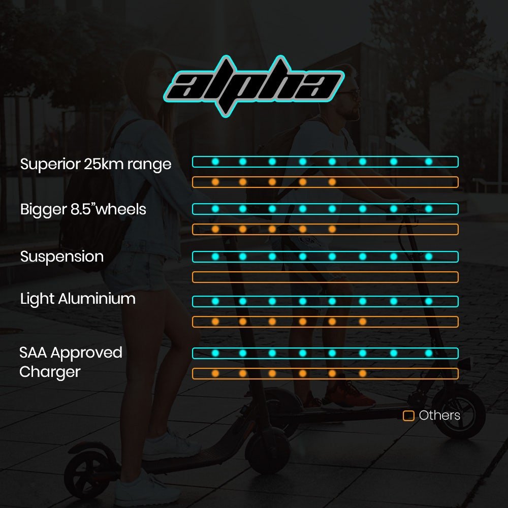 Discover the ALPHA Urban electric scooter – your perfect blend of advanced technology and superior design, crafted from high-quality materials. This high quality aluminium scooter delivers top-notch performance with unmatched structural strength.