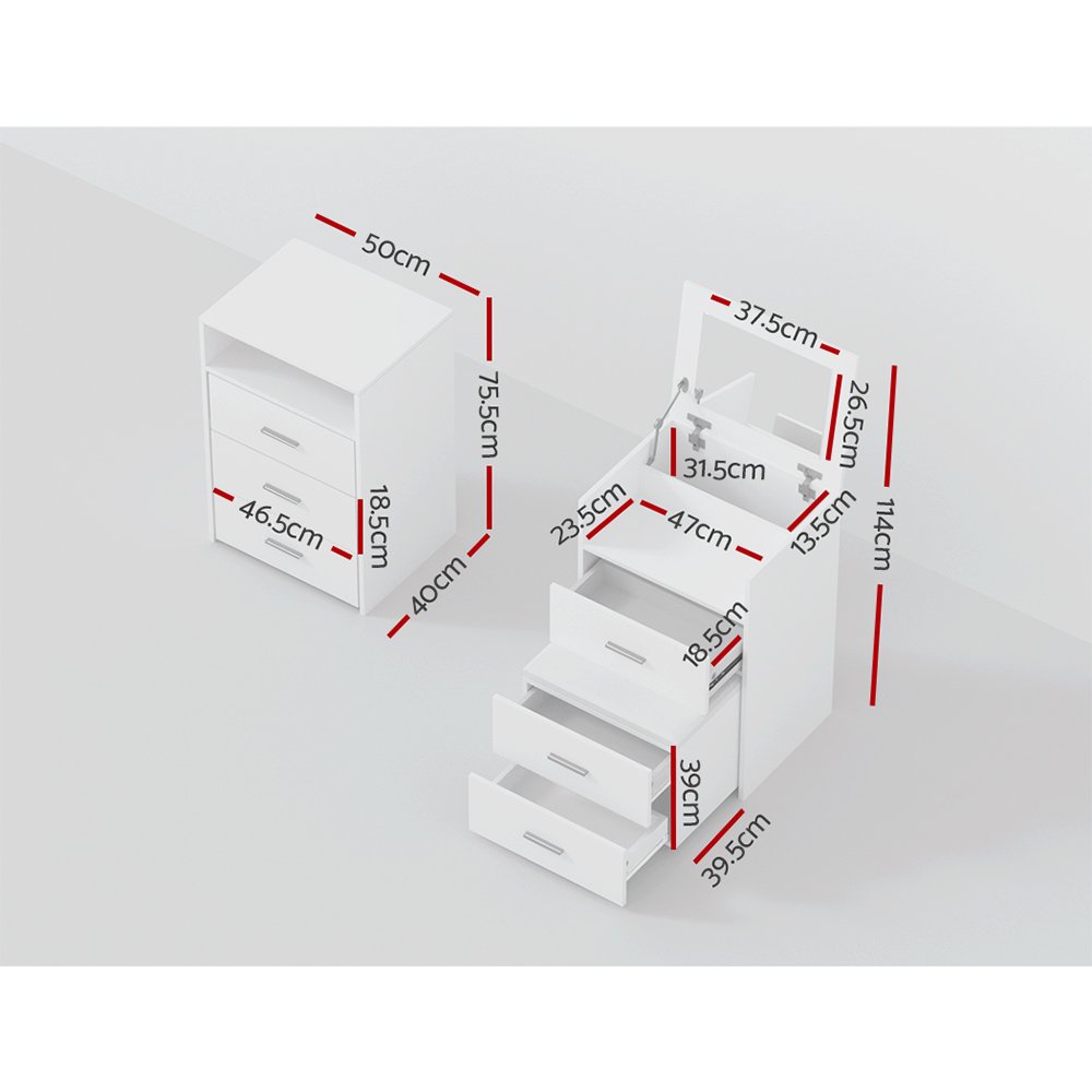 Artiss 2-in-1 Dressing Table Stool Set Bedside Table White