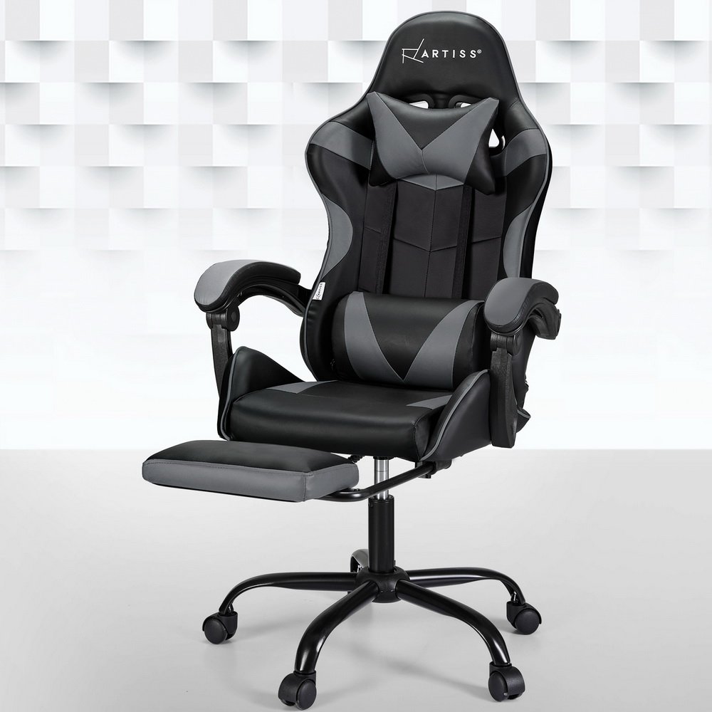 Artiss 2 Point Massage Gaming Office Chair Footrest Grey