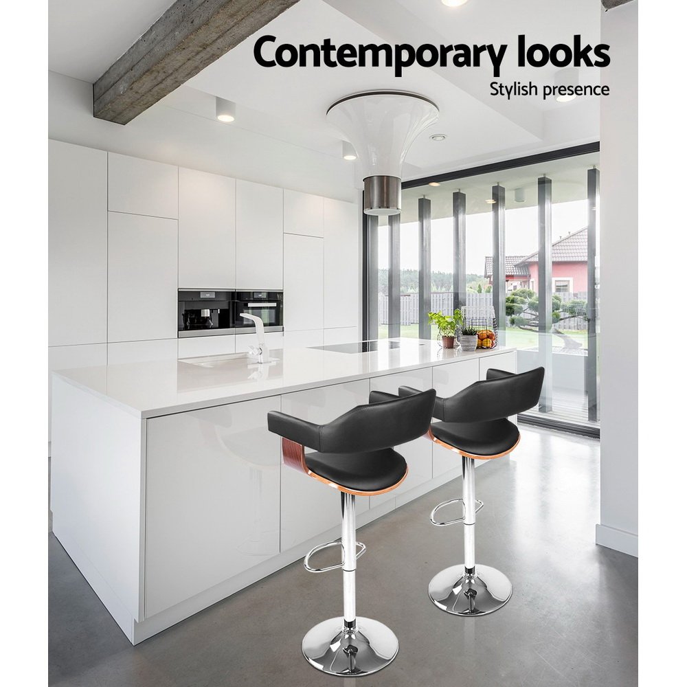 Artiss 2x Bar Stools Gas Lift Leather w/Armrest Black