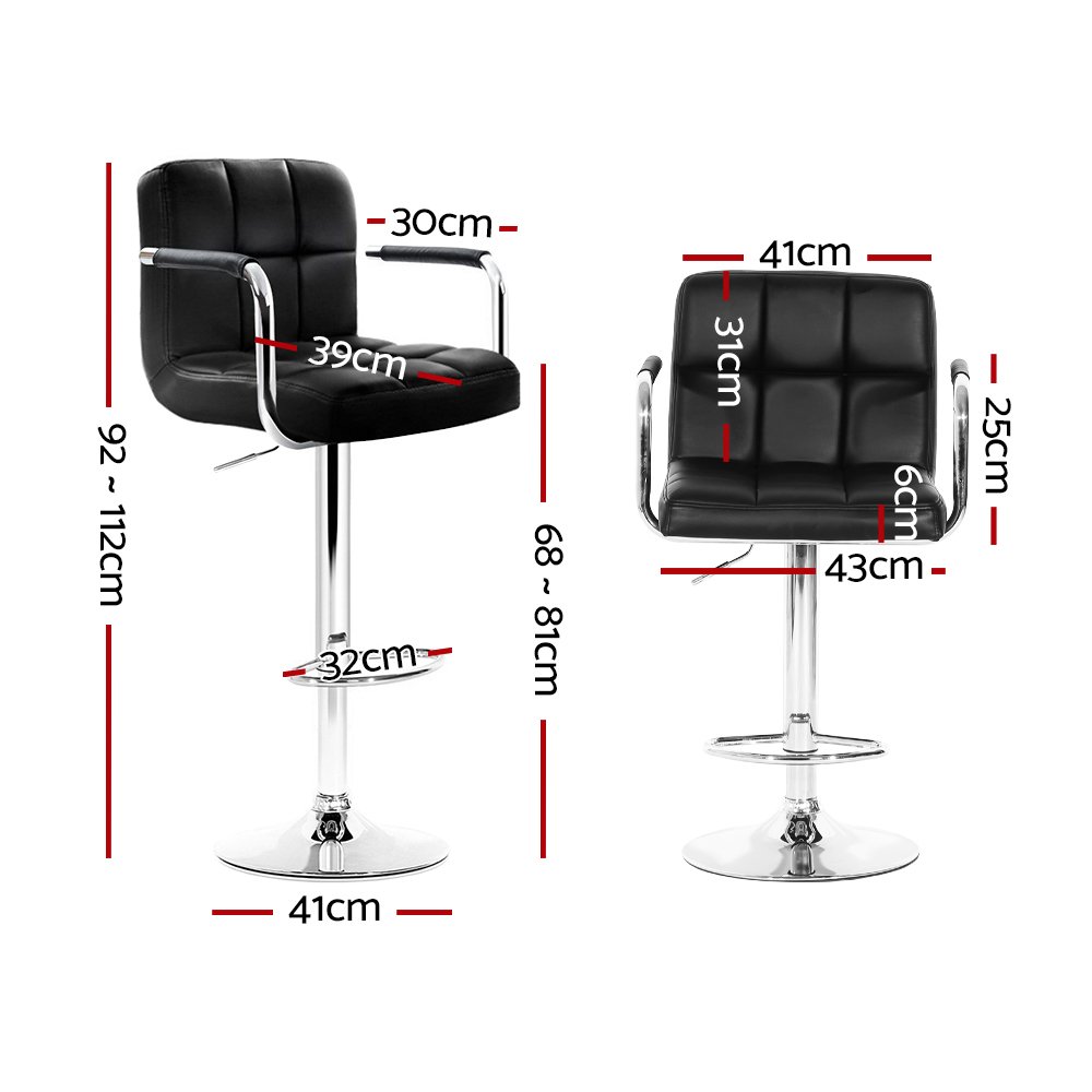 Artiss 2x Bar Stools Leather Gas Lift w/Armrest Black