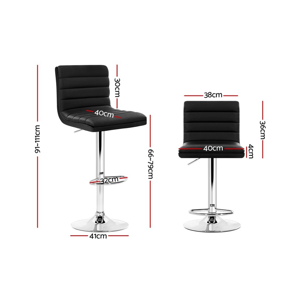 Artiss 2x Bar Stools Padded Leather Gas Lift Black