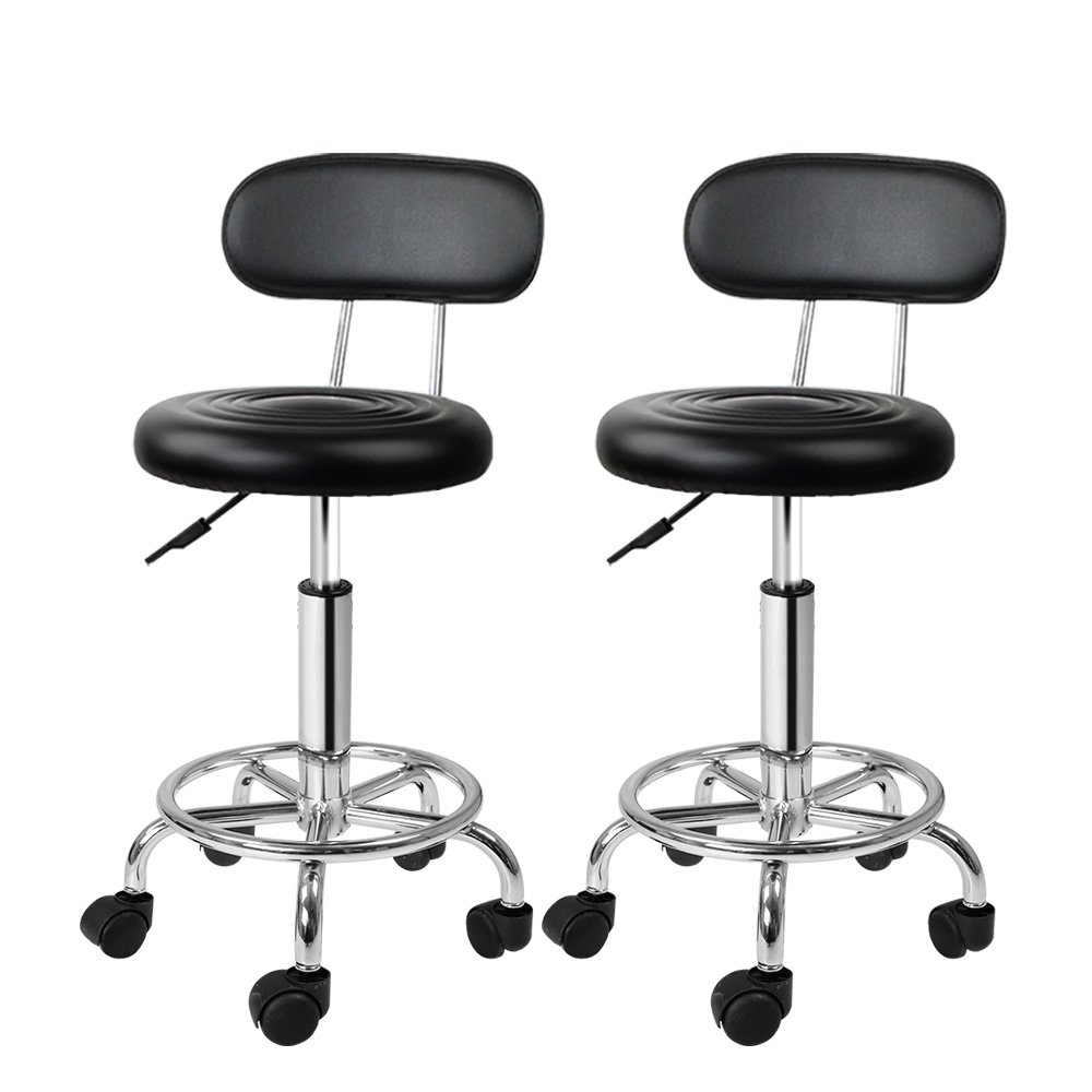 Artiss 2x Salon Stool Swivel Chair Backrest Black