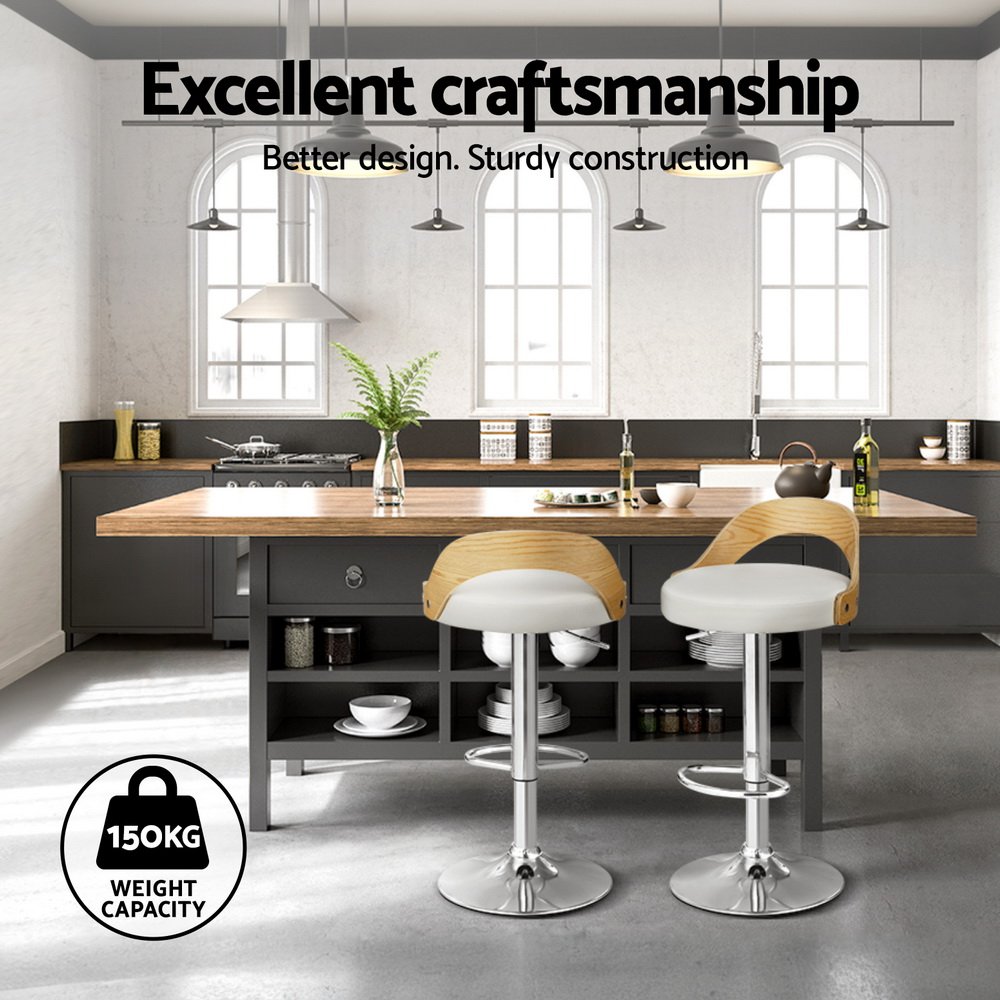 Artiss 4x Bar Stools Adjustable Leather Padded White