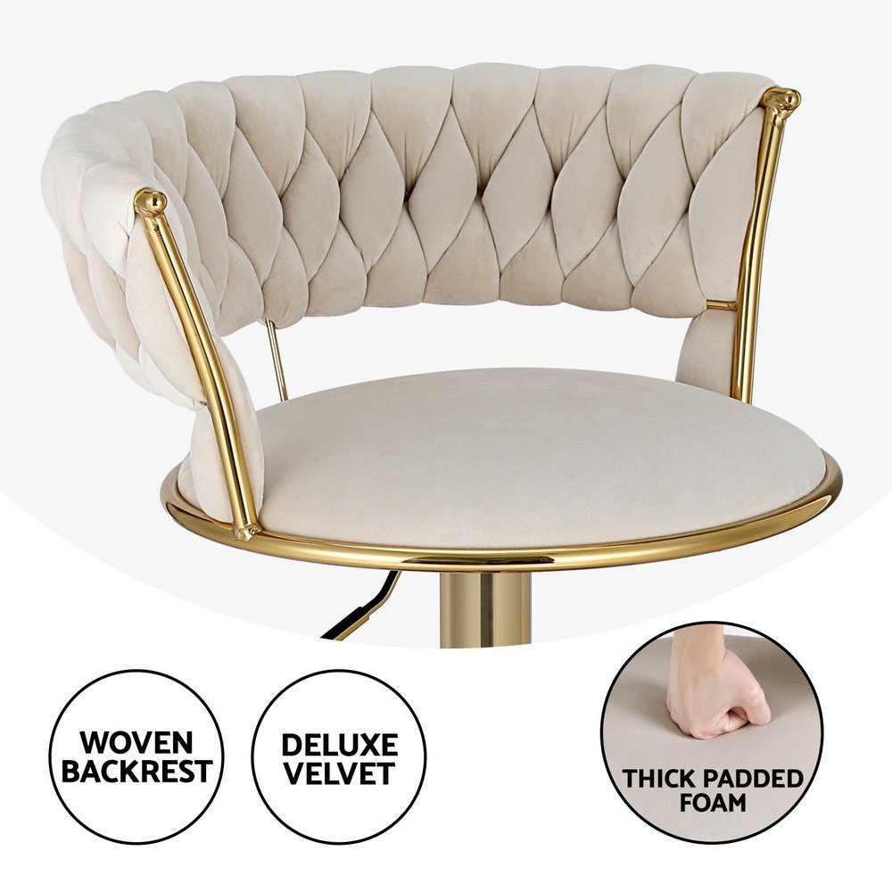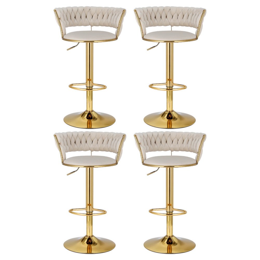 Artiss 4x Bar Stools Gas Lift Velvet Woven Backrest Ivory