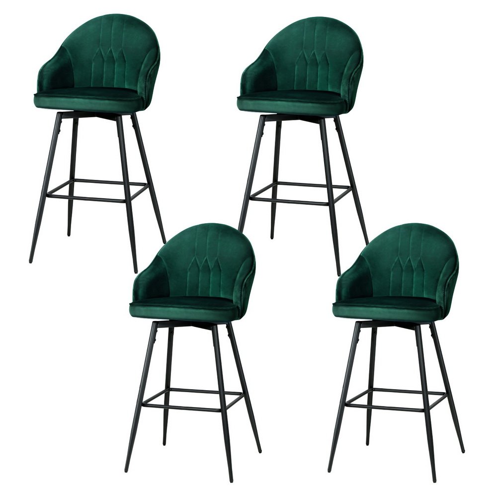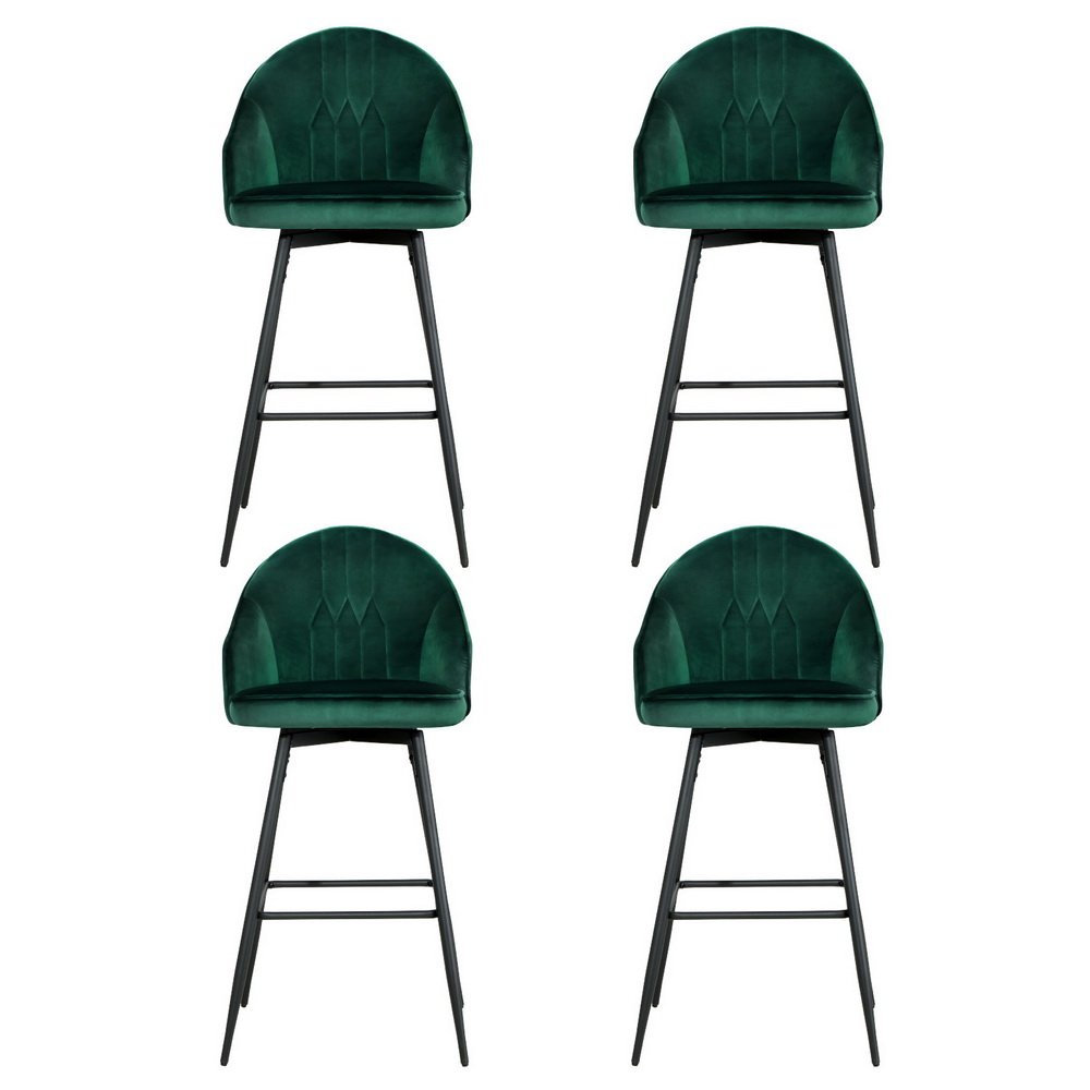 Artiss 4x Bar Stools Velvet Swivel Metal Legs Green