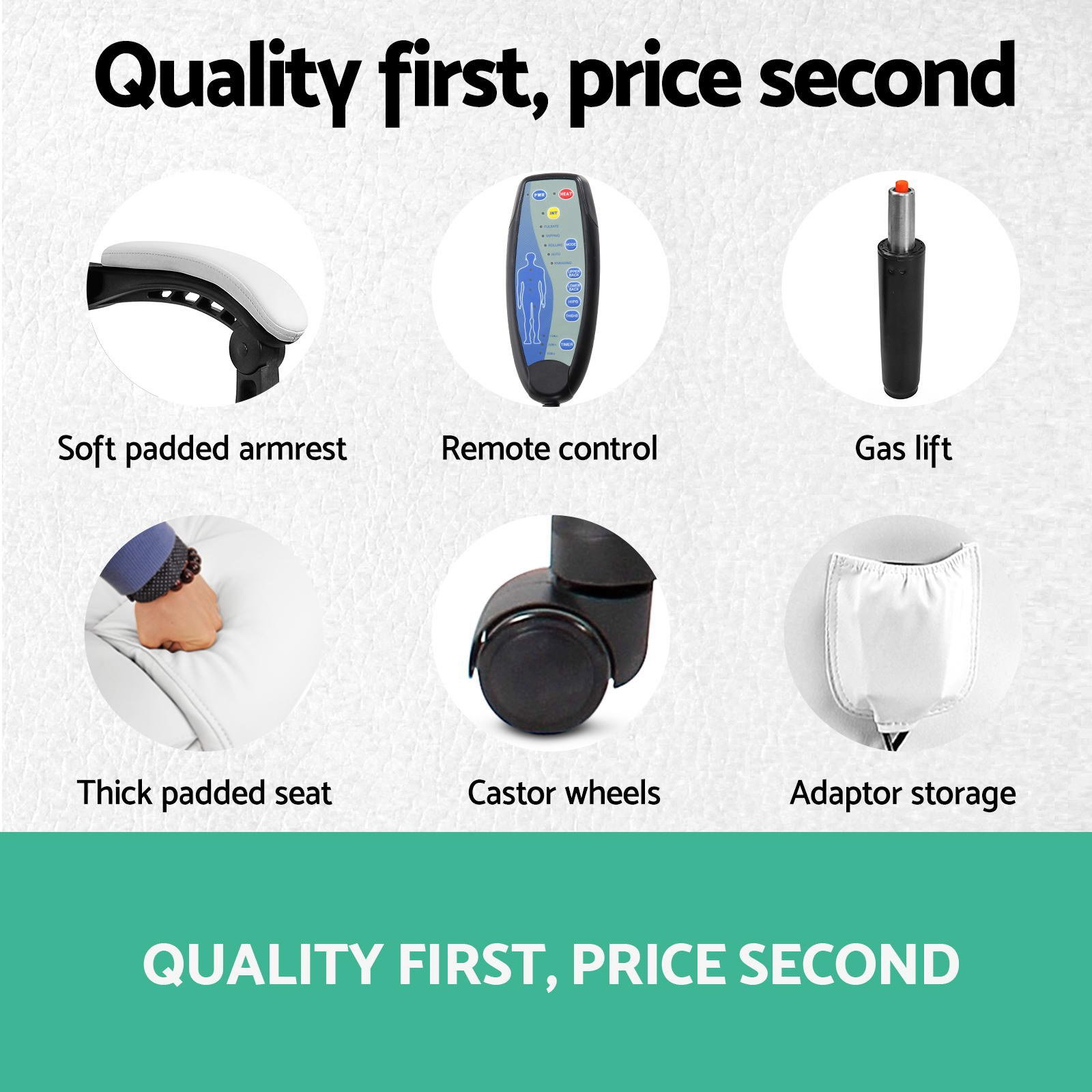 Artiss 8 Point Massage Office Chair Heated Seat Recliner PU White