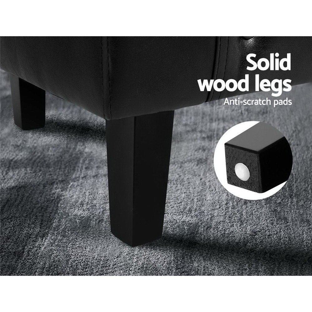 An iconic design that will stand the test of time and taste. The Ava Armchair and Ottoman is the perfect ensemble to incorporate some grandeur to your home. With its meticulous craftsmanship, the armchair is upholstered in premium PU leather with rich high-resilience foam padding for comfort. The barrel back wraps around and hugs your body to provide perfect support and comfort. The tufted design also adds some extra elegance. And the matching ottoman shares similar attributes. Not least, the solid rubber wood legs provide excellent support and the anti-scratch feet protect your pristine floors from damage. Form and function never looked better than with our Chesterfield-inspired armchair and ottoman.