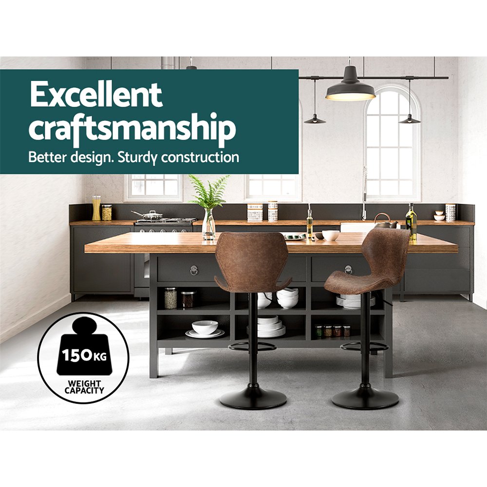 Artiss Bar Stools Kitchen Counter Stools Swivel Gas Lift Vintage Chairs Brown x2