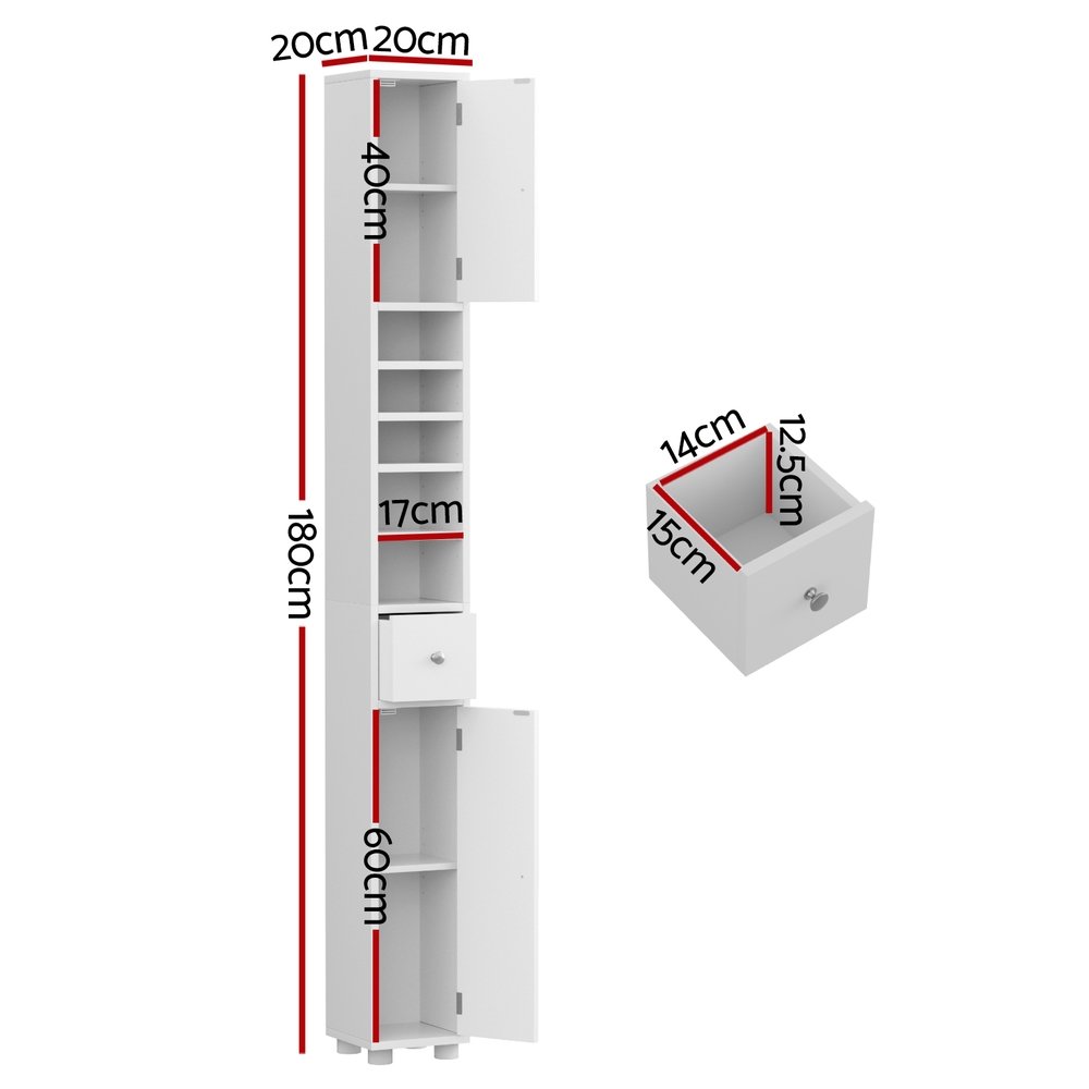 Artiss Bathroom Storage Cabinet 180cm Tall Slim Floor Cupboard Toilet Narrow Linen Tower