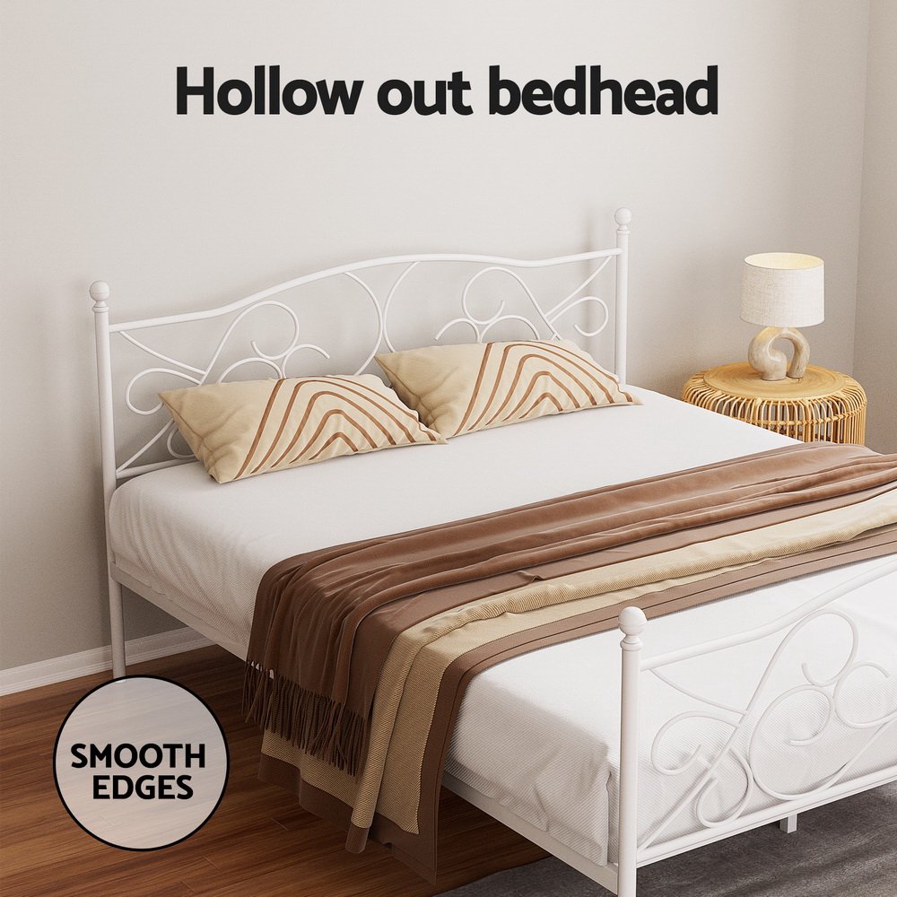 Looking for an affordable bed frame that doesn’t compromise on quality or style? Look no further than the GROA Bed Frame from Artiss. This simple, Provincial style bed features an enhanced powder-coated and rust-resistant steel frame with strong and wide plywood centre slats. The sturdy steel frame offers excellent support and stability, while the smooth and sleek plywood platform keeps your mattress securely in place and well-ventilated. The glamorous hollow-out design in the headboard and footboard give the bed a lovely look with alluring appeal. It features ample space underneath to fit trundle drawers or other storage solutions, perfect for keeping your bedroom tidy. Plus, its neutral colour scheme ensures that it will complement any bedding or decor you choose to pair it with. Practical, functional and stylish, the GROA Bed Frame from Artiss is an easy purchase.