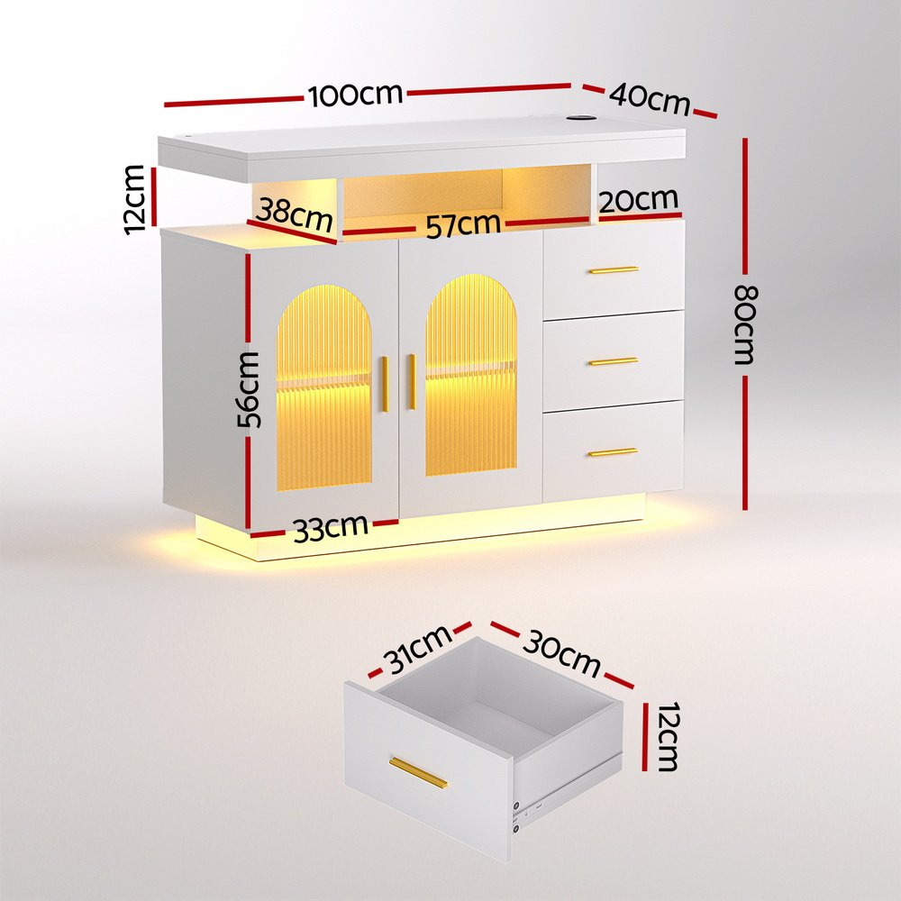 Artiss Buffet Sideboard Cabinet LED Clear Door Kitchen Storage Drawers White