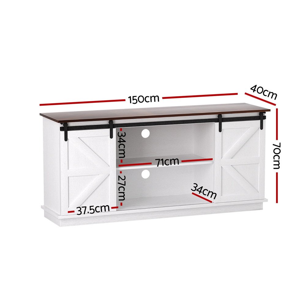 Upgrade your home storage with our 150cm rustic storage cabinet, designed with smooth sliding barn doors and a sturdy MDF frame for both style and durability. Featuring spacious 2-tier shelves, this cabinet provides ample room for storing books, d��cor, or electronics. The two cable management holes help organise your cords, while the included anti-tip kit ensures safety. Easy to maintain and clean, this cabinet is perfect for any living room, bedroom, or office. Assembly is quick and tool-friendly for your convenience. Bring rustic charm to your home with this versatile storage cabinet �C order now!