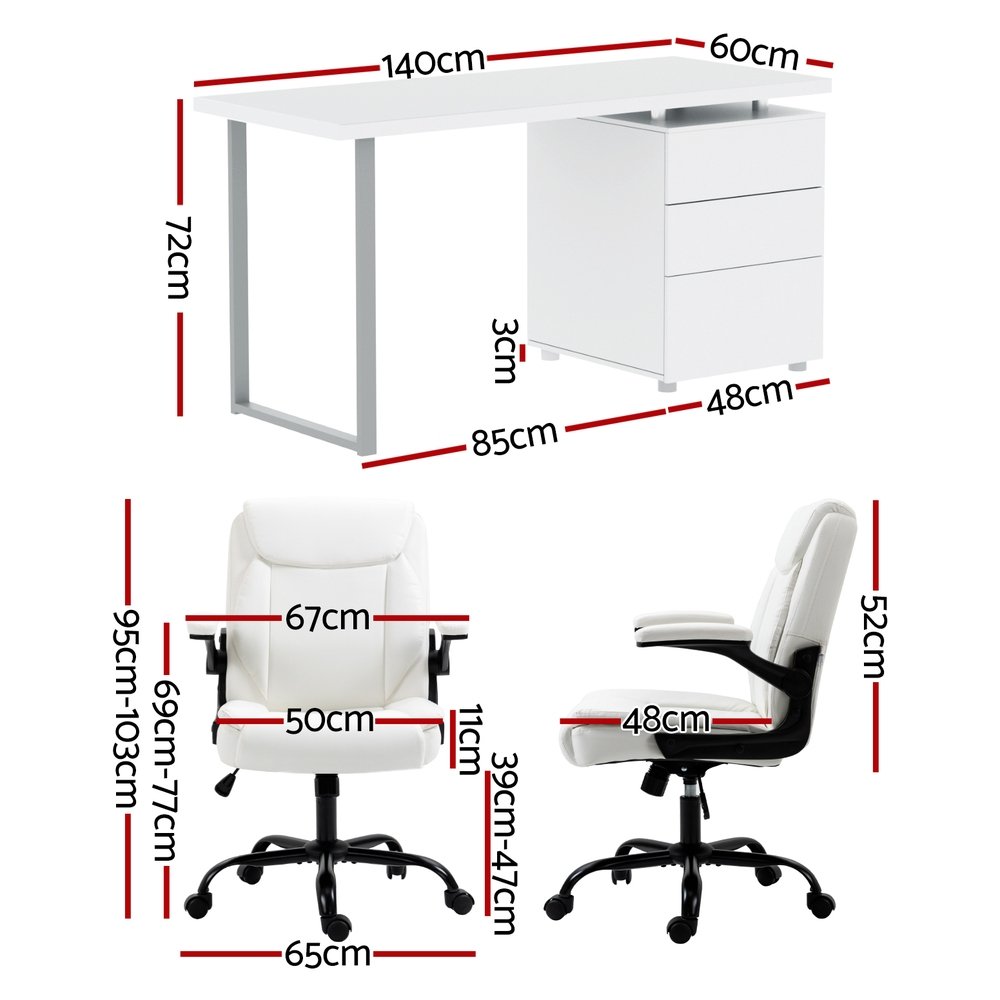 Artiss Computer Desk Executive Office Chairs Sets White