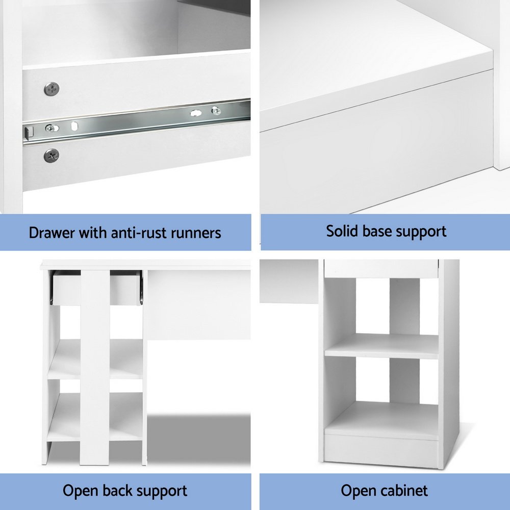 Artiss Computer Desk Shelf Drawer Cabinet White 100CM