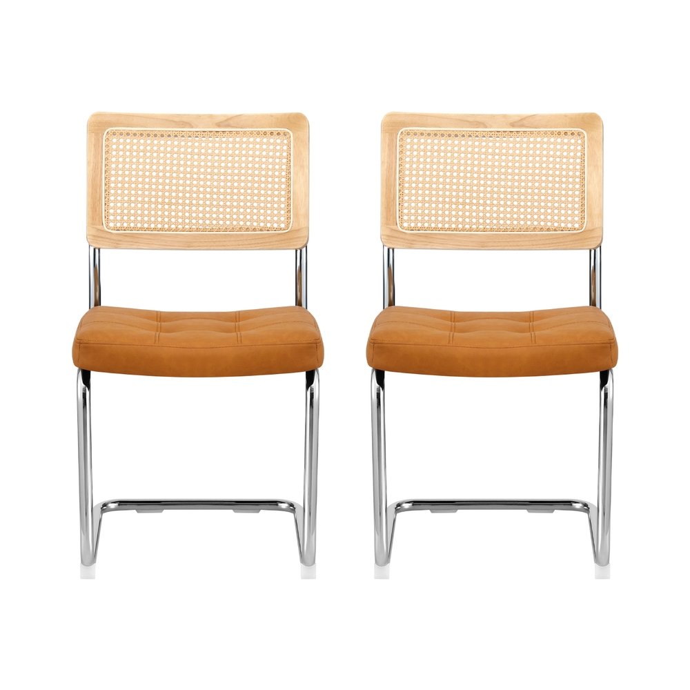 Artiss Dining Chairs Set of 2 PU Leather Rattan Cantilever Brown