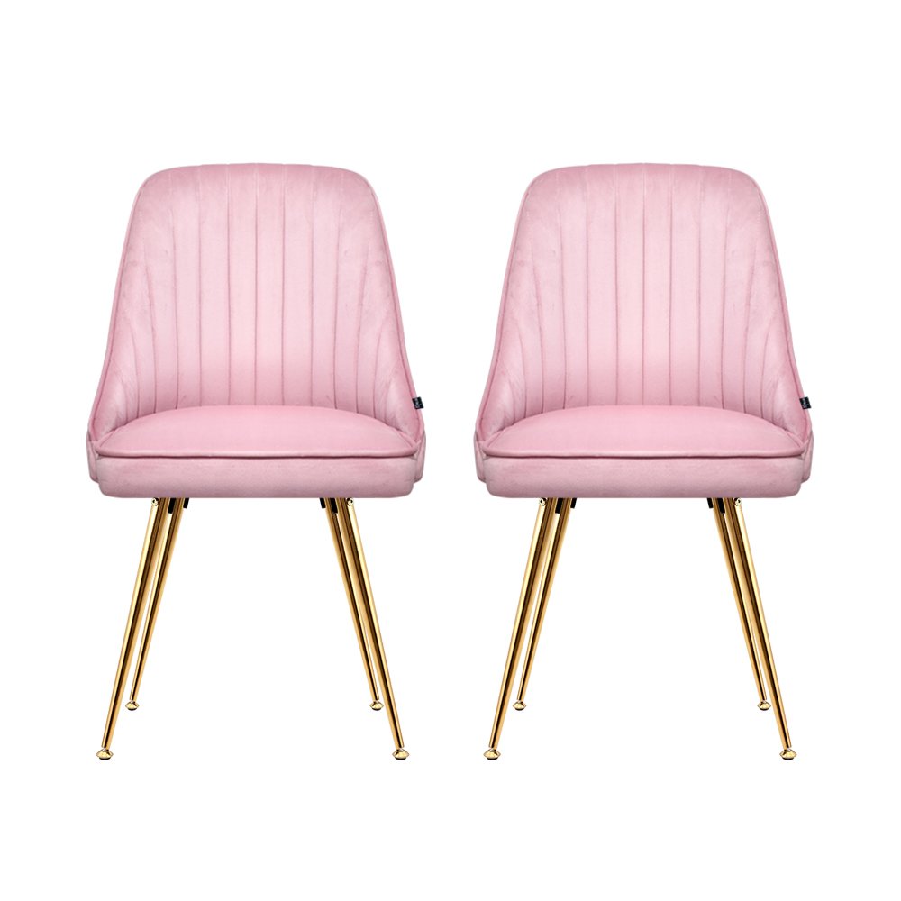 Artiss Dining Chairs Set of 2 Velvet Channel Tufted Pink