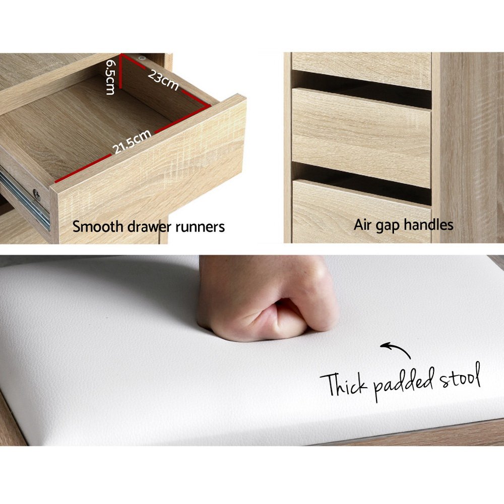 Artiss Dressing Table Stool Set Corner 5 Drawers Oak