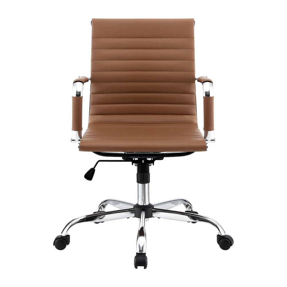 Artiss Office Chair Conference Chairs PU Leather Mid Back Brown