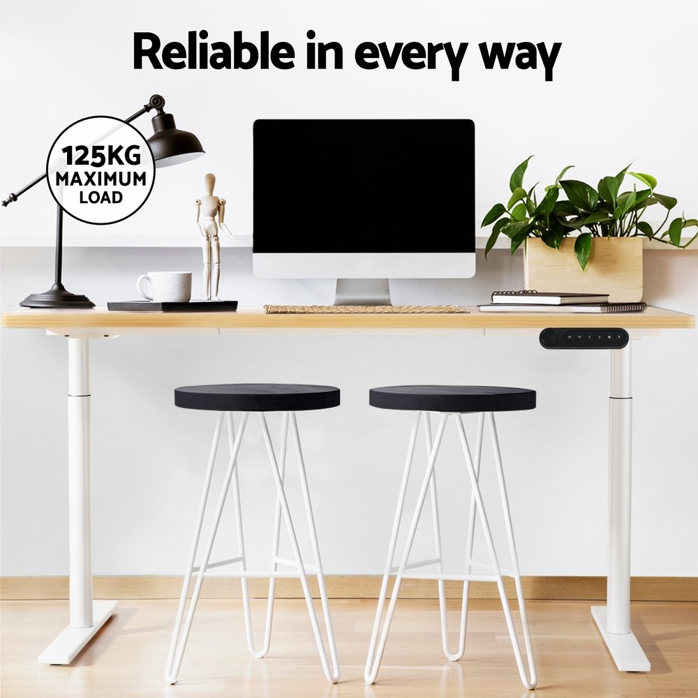 Poor posture and sedentary lifestyles contribute to several health issues. Now keep your health in good shape with the Artiss Motorised Adjustable Desk! With our innovative height-adjustable desk frame, you can stand while working and stretch and engage your muscles to prevent them from weakening. Our high-quality powder-coated desk frame makes cleaning and maintenance easy and ensures ultimate sturdiness. It features an easy-to-use digital control panel that enables you to easily adjust the desk to a suitable height and ensure your comfort while working. The smooth motors allow for ultra-quiet operation with low energy consumption. It also comes with adjustable rubber foot pads that offer extra stability and keep your floors safe. As for the desktop, it comes with pre-drilled holes for easy installation. It is made from eco-friendly particleboard and comes with a natural wood grain or contemporary matte finish to create a smooth surface and a beautiful aesthetic. The desktop is scratch resistant and perfect for all your working needs. Get yourself Artiss Motorised Adjustable Desk Frame and Desktop to prevent fatigue and improve productivity.