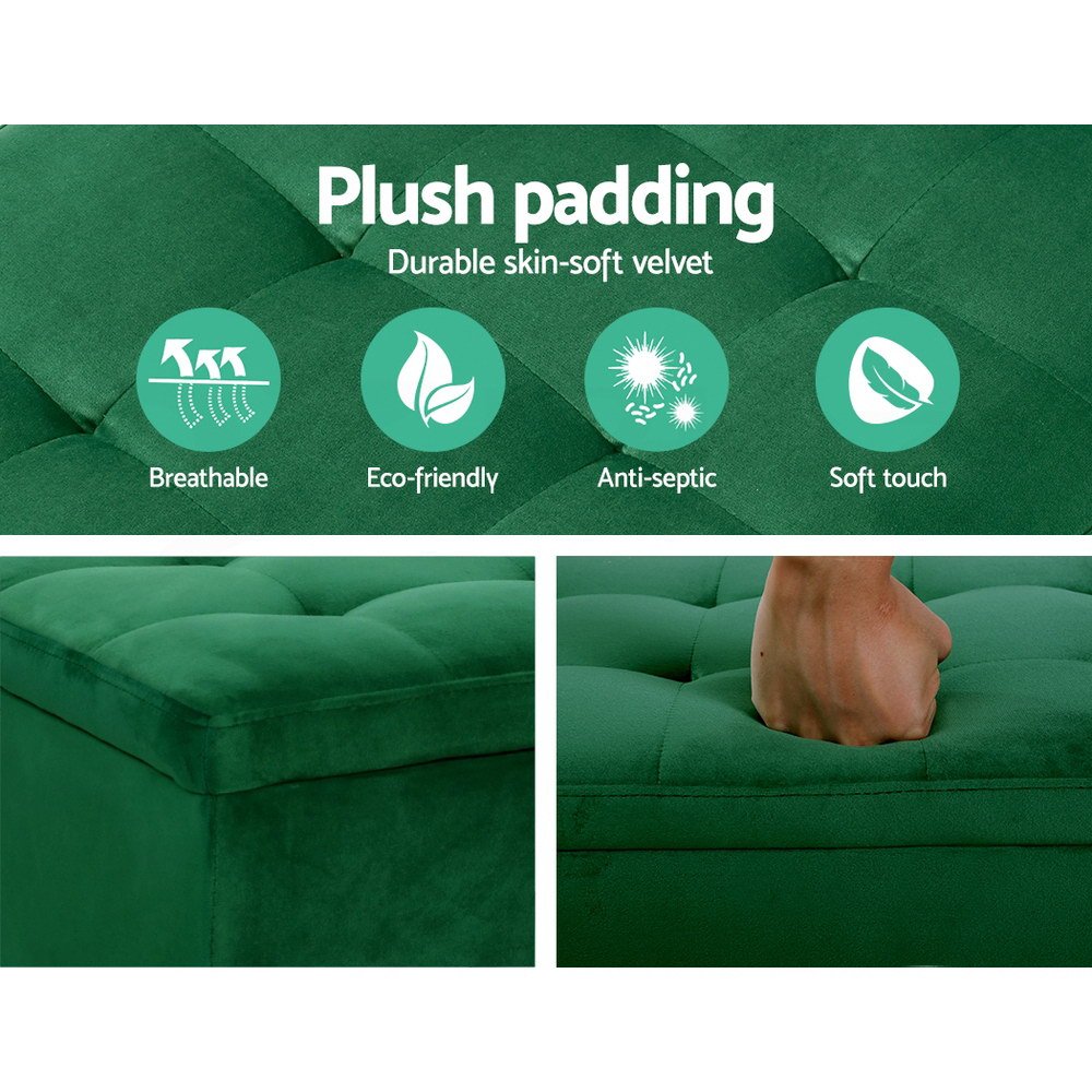 Artiss Storage Ottoman Blanket Box 97cm Velvet Green