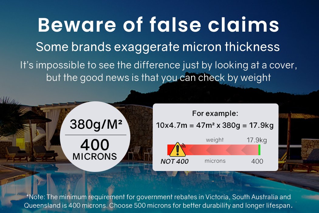 This blanket has good durability because of its ability to withstand UV damage, chemical penetration and tearing. While other brands may claim to have a thickness of 400 Microns, we strongly recommend that you check that the weight of their product matches ours. If it doesn’t weigh as much, or if they don’t advertise the product weight, then you should be wary of their claim.