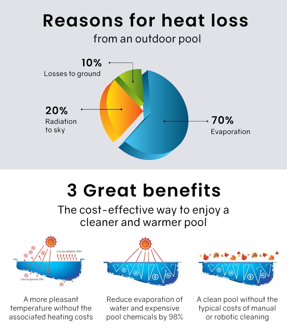 Your pool should be there for your leisure and not another chore, and it will be nice all year round with the cover denying access to any debris. The isothermal effect also has the benefit of inhibiting the negative effects of photosynthesis such as the proliferation of algae.