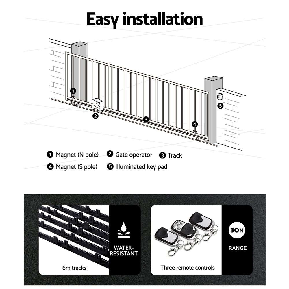 Automatic Sliding Gate Opener Kit 20W Solar 6M 600KG