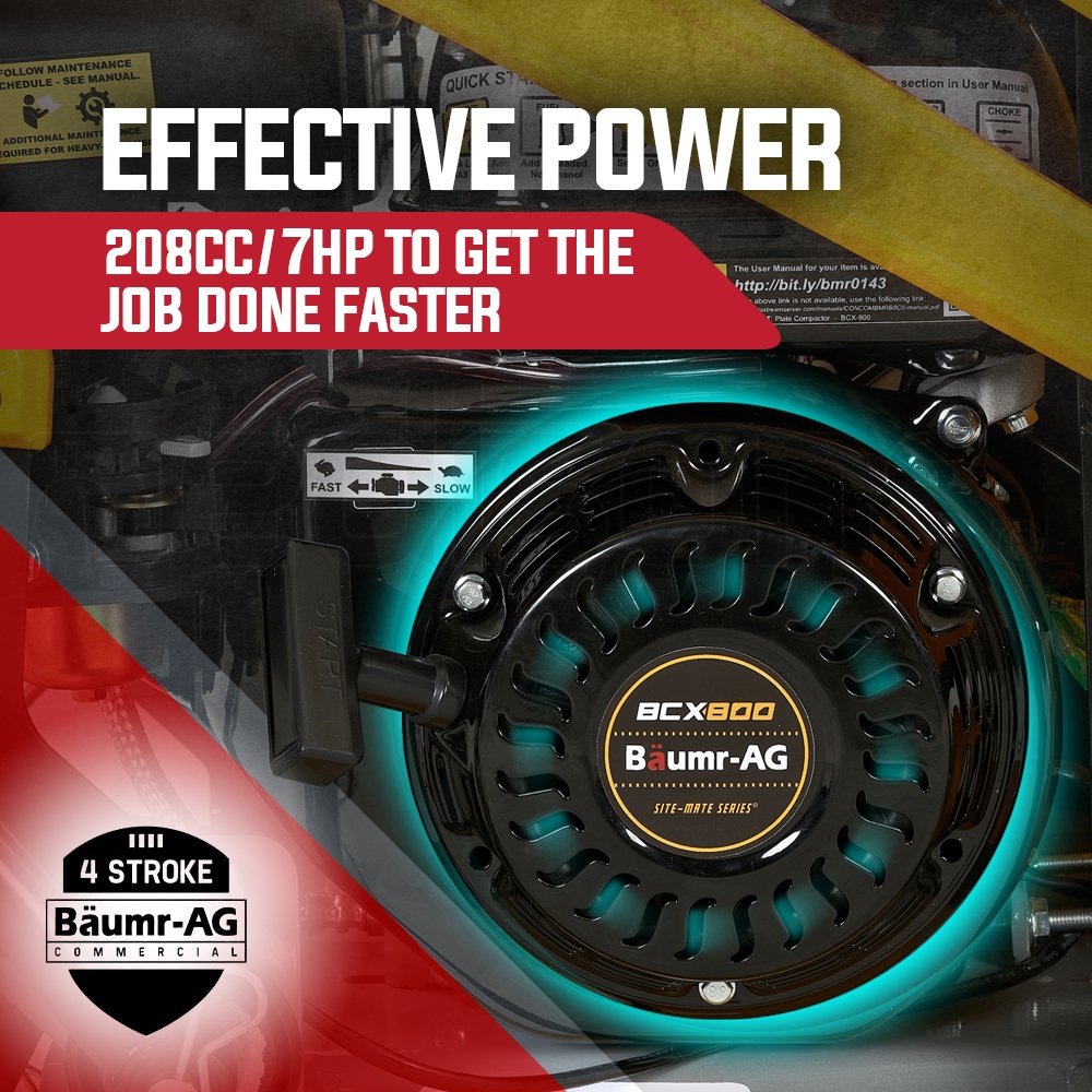 With all these features the Baumr-AG plate compactor is years beyond the competition, making it the number one choice for paving projects like driveways, landscaping or preparing foundations for concreting. To top it all off, this fully-featured top quality unit is offered at seriously sharp ‘direct to you’ pricing, plus when you factory in the time and costs associated with renting a plate compactor, purchasing a Baumr-AG BCX800 is one smart investment.