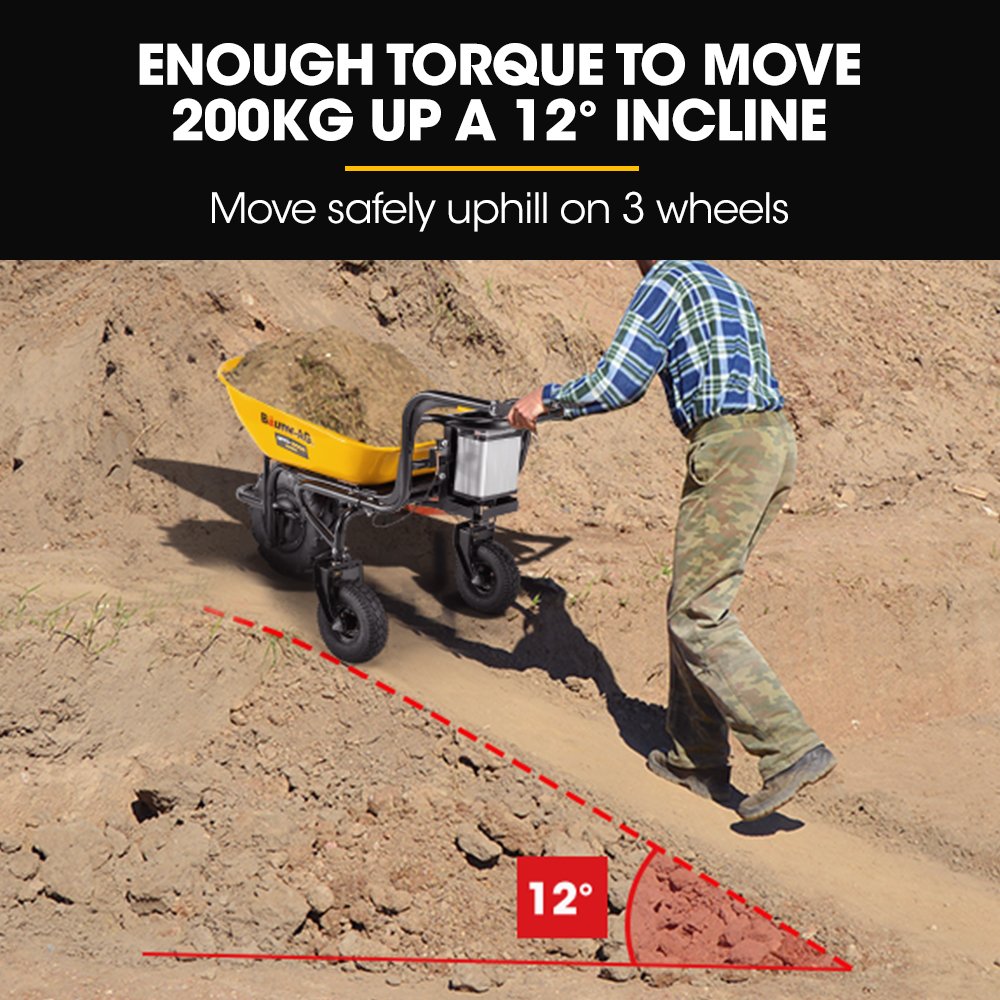 Introducing the Baumr-AG All Terrain BPR-900E: This 100L Battery Powered 3-Wheeled Wheelbarrow is designed to revolutionise your heavy-duty material hauling. It has powerful features and offers efficient operation, this wheelbarrow is a game-changer for job sites, farms and landscaping tasks.