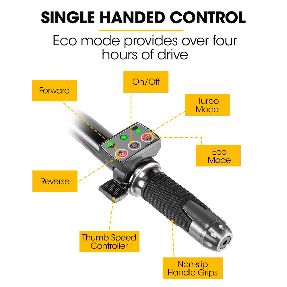 Enjoy the convenience of the 40V/6Ah removable Li-ion battery, providing up to 5 hours of efficient operation on a single charge. The brushless motor delivers incredible torque, while the copper rotor and stator ensure reliable performance. Plus, you can remove the battery for an on-board or off-board charging time of just 3 hours, you’ll experience minimal downtime.