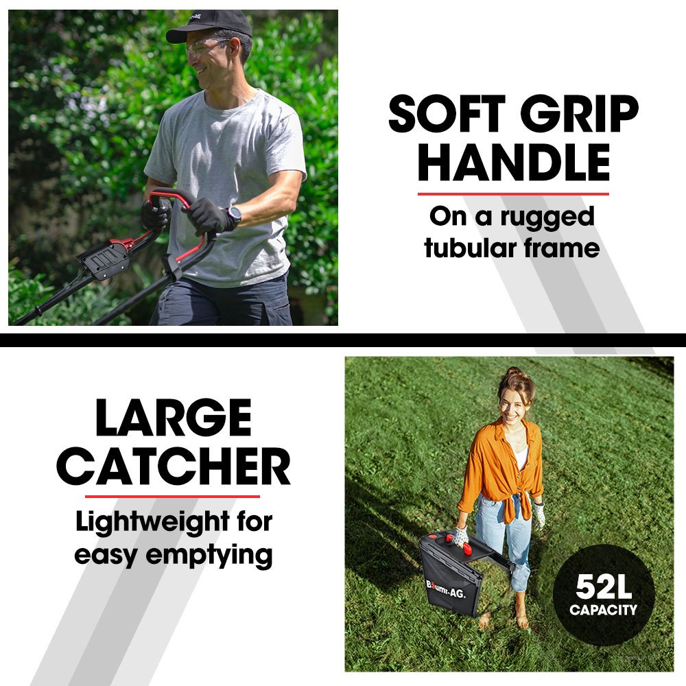 Baumr-AG continues to deliver innovative gardening tools with this addition to the cordless SYNC range the 17 40V Brushless 500CX Lawn Mower. With its powerful advanced brushless motor it slices through tough grass with ease! Being a cordless electric mower it starts humming in an instant via the child safe starting system, and theres no messing about with fuel, fumes or maintenance hassles.