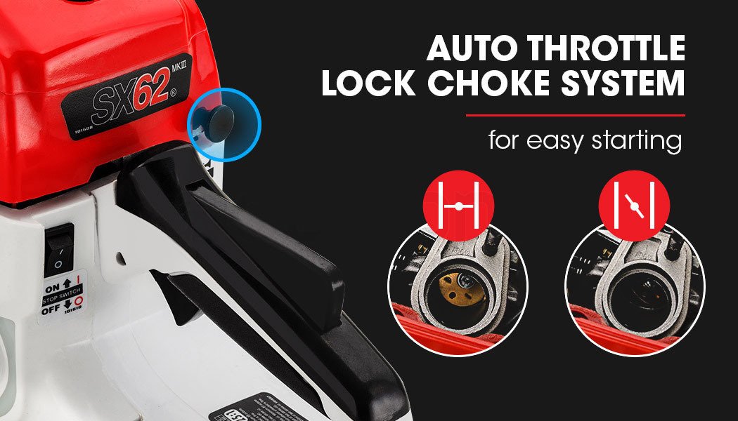 The SX62 is perfect for any application, whether it be preparing firewood, lopping medium to large trees, clearing those overhanging branches, removing bushfire hazards, or as a great companion on your next 4WD adventure or camping trip. Purchase AUSTRALIA’s HOTTEST SELLING CHAINSAW TODAY and save hundreds off this top-of-line model.