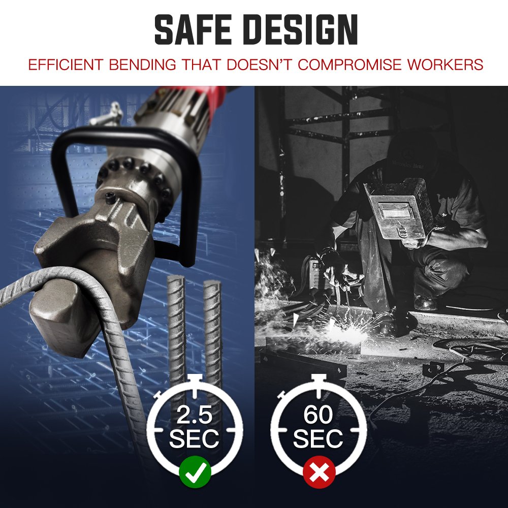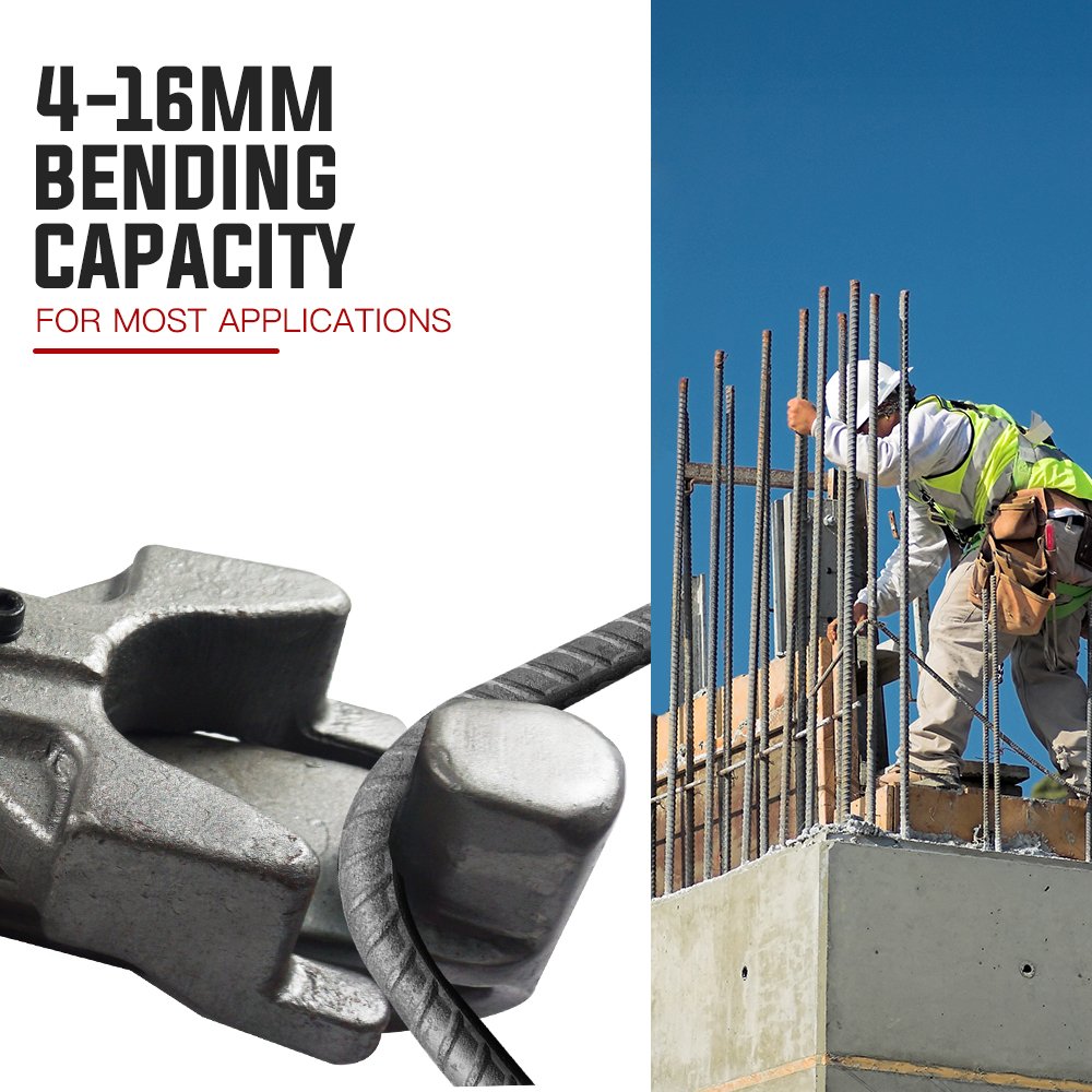 The demanding nature of Rebar bending means it’s vital that quality tools are used to do the job safely and efficiently. Baumr-AG’s range of reo bar bending equipment certainly fits the bill. The commercial-grade Baumr-AG RB16B Hydraulic Rebar Bender is a must have for any builder with its tough body with a very portable weight of 14kg. The front and rear handle configuration allows it to be maneuvered into confined spaces, and the front handle is designed to conveniently suit either right or left-handed operation.